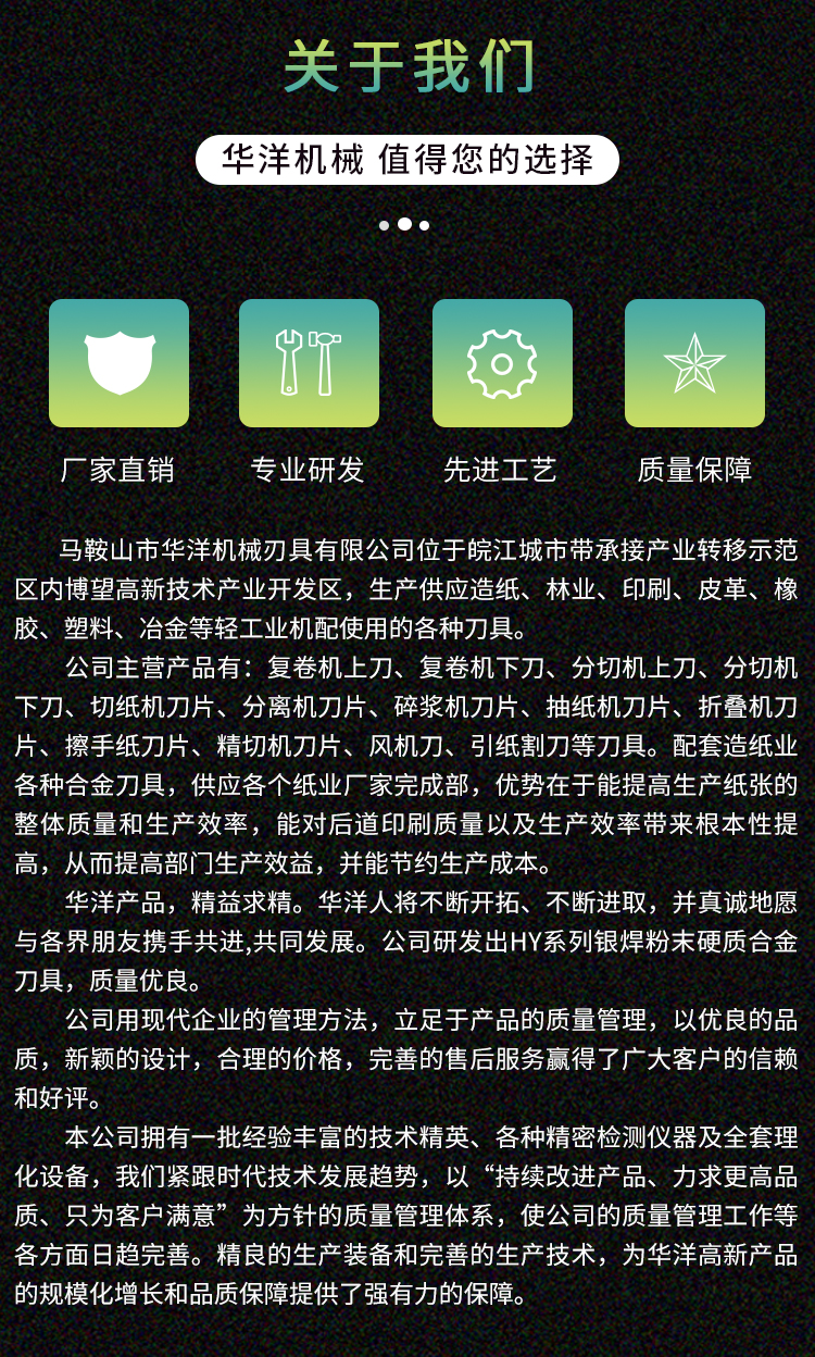 馬鞍山市華洋機械刃具有限公司 版權所有 免責聲明 皖ICP備2022002938號-1 營業(yè)執(zhí)照